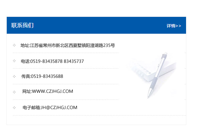 傳真:0519-83435688    郵編:213135    網址:WWW.czjhgj_com.szyh1898.com    電子郵箱:JH@czjhgj_com.szyh1898.com